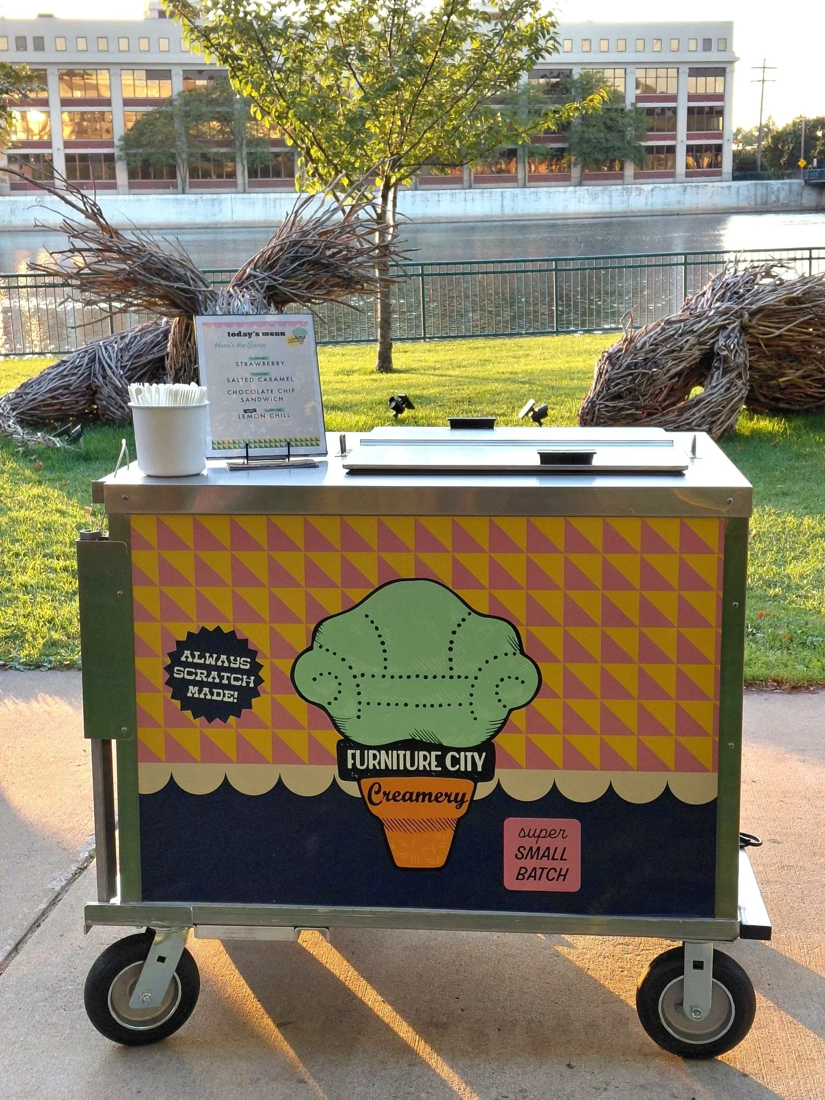 We come ready to serve your guests with our ice cream cart with ice cream and ice cream treats or our interactive sundae bar. Have a party for under 100 people, we can prepare single serving ice cream and treats for you to pick up for your party.